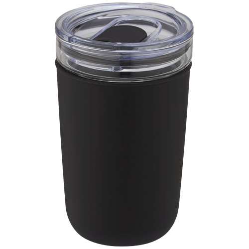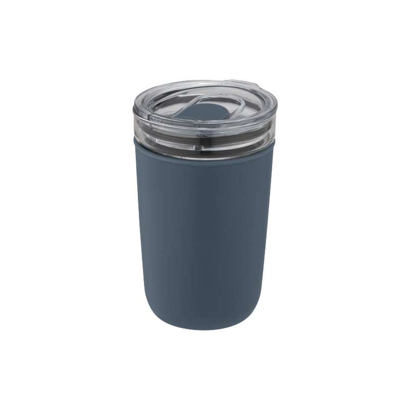 Bicchiere in vetro con custodia protettiva in plastica riciclata. Il bicchiere è realizzato in resistente vetro borosilicato al 100%, che mantiene la freschezza delle bevande e non contiene sostanze chimiche nocive. Priva di BPA, testata e approvata ai sensi della normativa tedesca in materia di sicurezza alimentare (LFGB). Testata e approvata per il contenuto di ftalati secondo il regolamento REACH. Il bicchiere è adatto per la maggior parte delle macchine per il caffè. Capacità di 420 ml. Questo articolo è lavabile in lavastoviglie, basta rimuovere la custodia in plastica. Fornita in una confezione regalo in cartone riciclato. Dimensioni: 14,2 x Ø 8,8 cm Materiale: Vetro borosilicato, Plastica riciclata, Plastica AS Diametro: 8,8 cm
