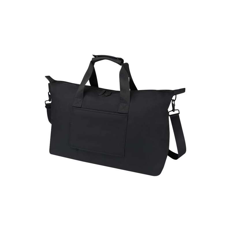 Il borsone Turner è realizzato in plastica riciclata certificata GRS al 51% e la fodera è in PET riciclato certificato GRS al 100%. Il borsone è caratterizzato da un apposito scomparto imbottito per portatile da 15,6\", una fascia interna per riporre una borraccia e una tasca con cerniera per contenere gli oggetti più piccoli. Inoltre, un cinturino per bagagli posteriore consente di agganciarlo facilmente al bagaglio a mano, rendendolo un comodo accessorio per i viaggi. Il borsone può essere trasportato con le 2 maniglie corte o con la tracolla espandibile e rimovibile, regolabile per il massimo comfort. Capacità: 36 litri. Dimensioni: 52 x 27 x 29 cm Materiale: 51% PU riciclato GRS e 49% PU