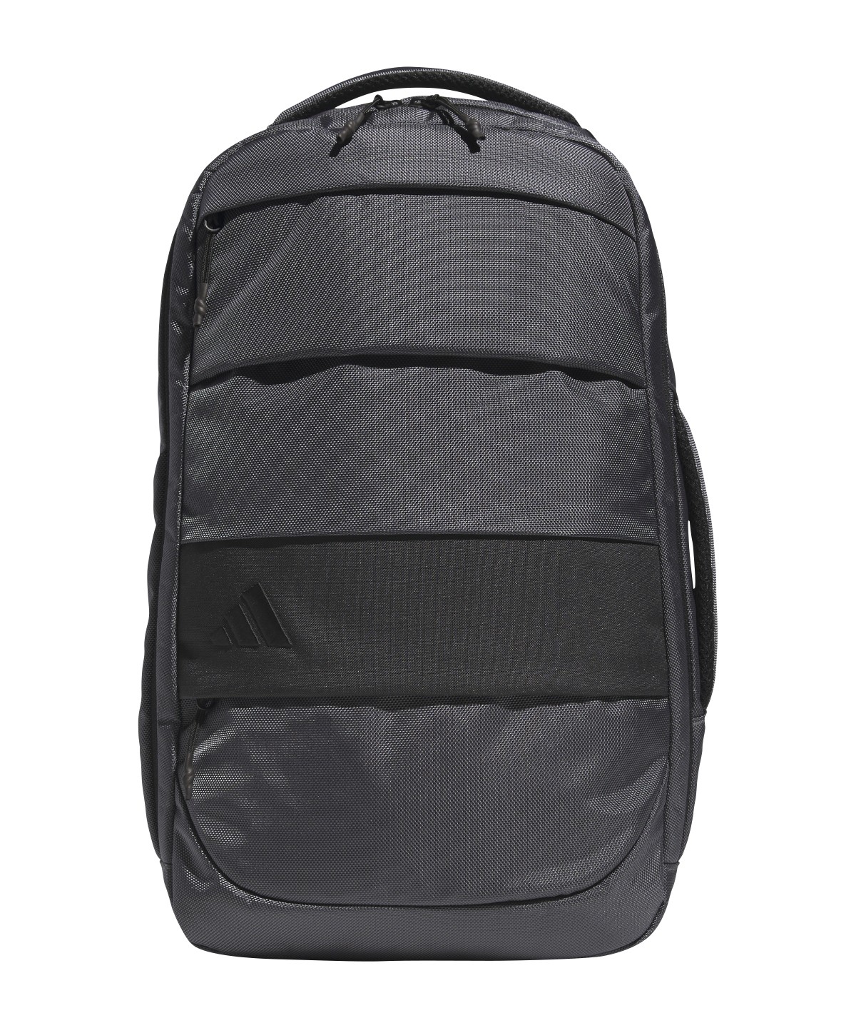 Uno zaino multiuso per golfisti realizzato in parte con materiali riciclati. Cerniera anteriore e tasche laterali a scomparsa. Custodia per laptop e spallacci imbottiti regolabili con cinturino sul petto. Maniglie superiori e laterali.