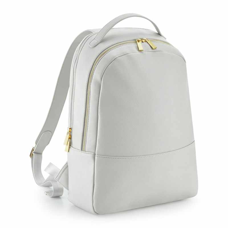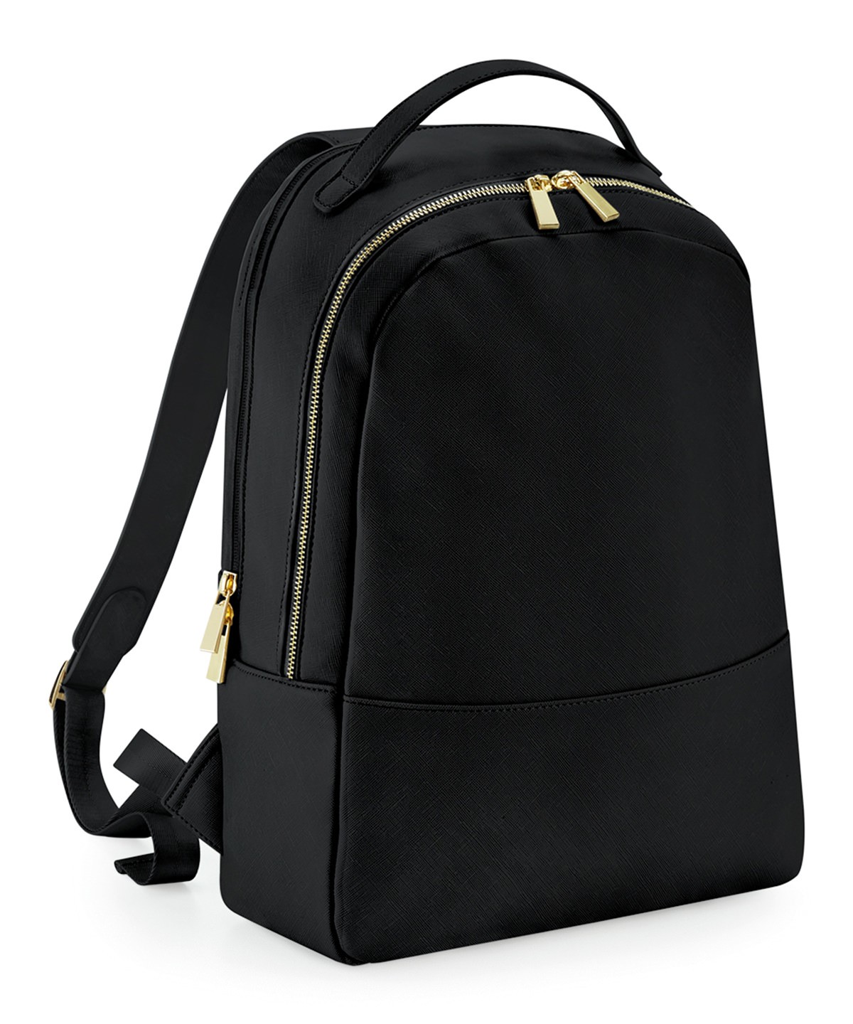 Realizzato in tessuto Saffiano a grana fine effetto pelle al 100%, questo elegante zaino ha una finitura premium esclusiva, accentuata dalla sua ferramenta in metallo dorato lucido. All'interno dell'ampio scomparto principale si trova un organizer multiuso, una tasca sicura per oggetti di valore e una lussuosa fodera morbida al tatto. Il design multiuso presenta anche una custodia imbottita per laptop, una tasca posteriore con cerniera di sicurezza, una cinghia per maniglia bagaglio con ruote e spallacci regolabili in tessuto.