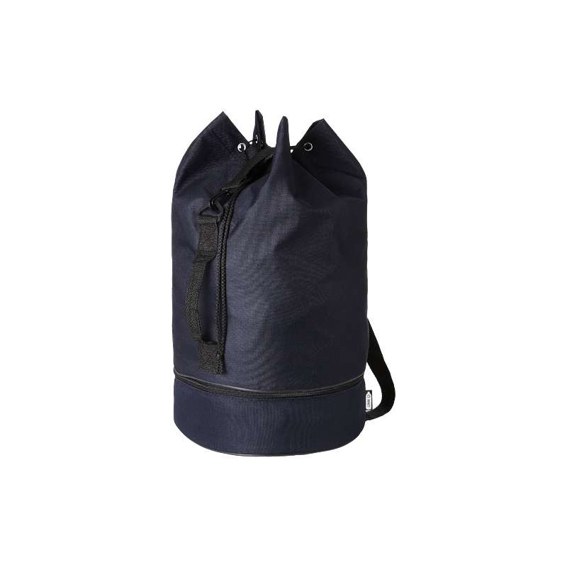Sacca impermeabile realizzata in plastica PET riciclata con uno spazioso scomparto principale da 20 litri, chiusura a cordoncino, maniglia laterale e tracolla regolabile. Presenta inoltre uno scomparto inferiore separato con zip per contenere gli oggetti di piccole dimensioni. Dimensioni: 48 x Ø 28 cm Materiale: 600D Poliestere riciclato Diametro: 28 cm