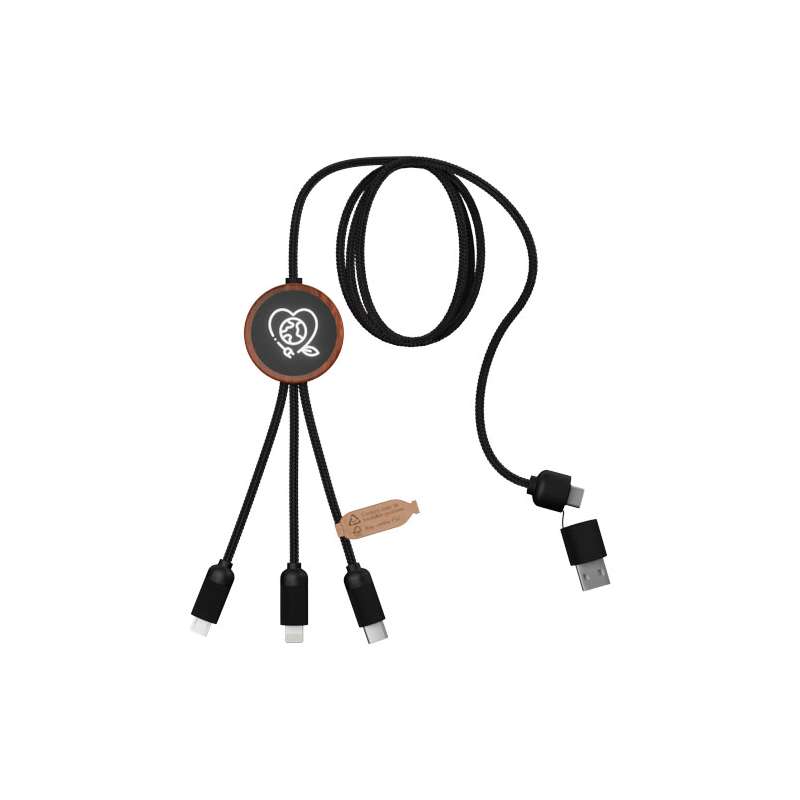 Il Cavo di ricarica 5 in 1 da serigrafare con scritte - cod. P2PX071 è il prodotto perfetto per chi cerca un gadget tecnologico e personalizzato. Realizzato in PET riciclato, questo cavo è dotato di un logo luminoso e di una custodia rotonda in bambù, che lo rende non solo funzionale ma anche ecologico.