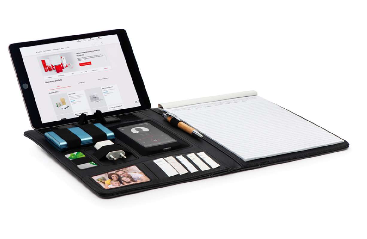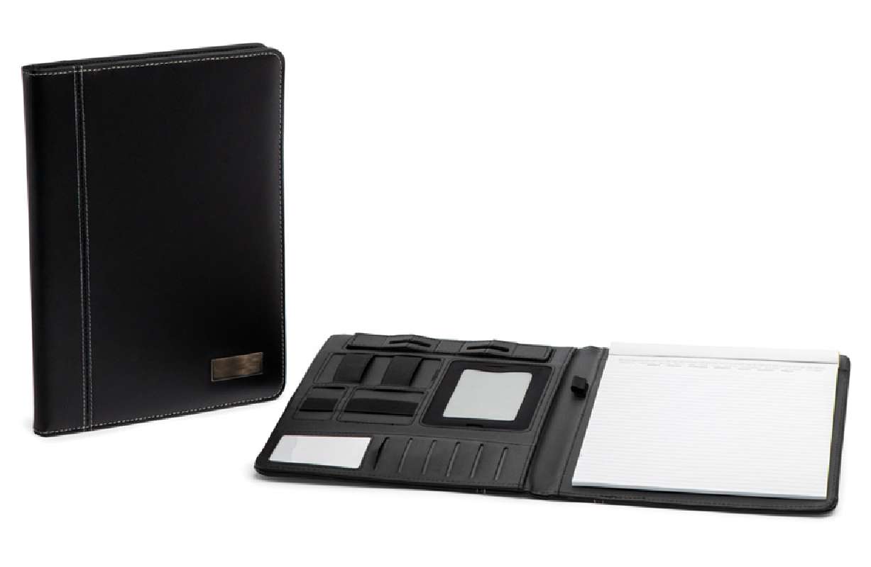 Le cartelline A4 personalizzate in pelle rigenerata - FA-7685 sono disponibili in colore nero, un'opzione versatile che si abbina perfettamente a qualsiasi stile e ambiente di lavoro. Con diverse funzioni e supporti, questa cartellina è ideale per chi vuole tenere tutto sotto controllo e organizzato in modo impeccabile.