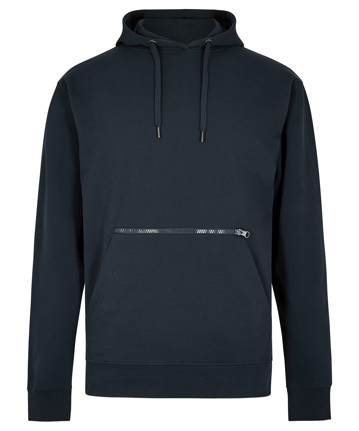 Caratterizzato da dettagli di tendenza come una doppia tasca con cerniera, occhielli in metallo e un cappuccio rialzato, questo capo unisce stile e funzionalità. Il tessuto piqué offre una resistenza superiore all'abrasione, mentre il pile spazzolato garantisce calore e comfort.