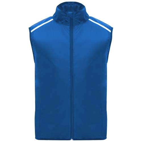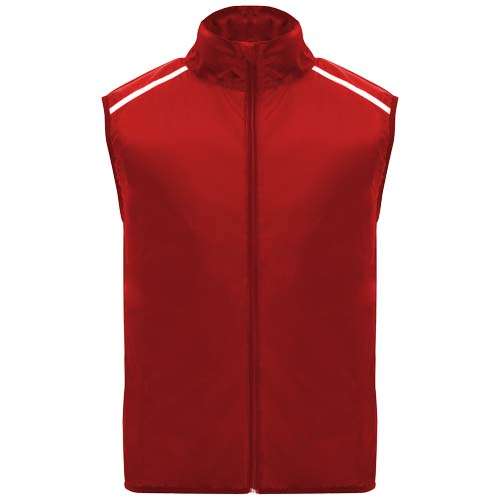 Antivento e traspirante. Zip anteriore con protezione per il mento abbinata. Orlo elasticizzato sul giromanica e sulla parte inferiore. Parte inferiore del retro in tessuto microforato. Dettagli fluorescenti sulla parte superiore, anteriore e posteriore. Tasca con fascia elastica per riporre il gilet e da indossare al polso. Etichetta rimovibile. Materiale: 100% Poliestere, 70 g/m2, Contrast fabric, Mesh con finiture cool fit 100% Poliestere, 70 g/m2