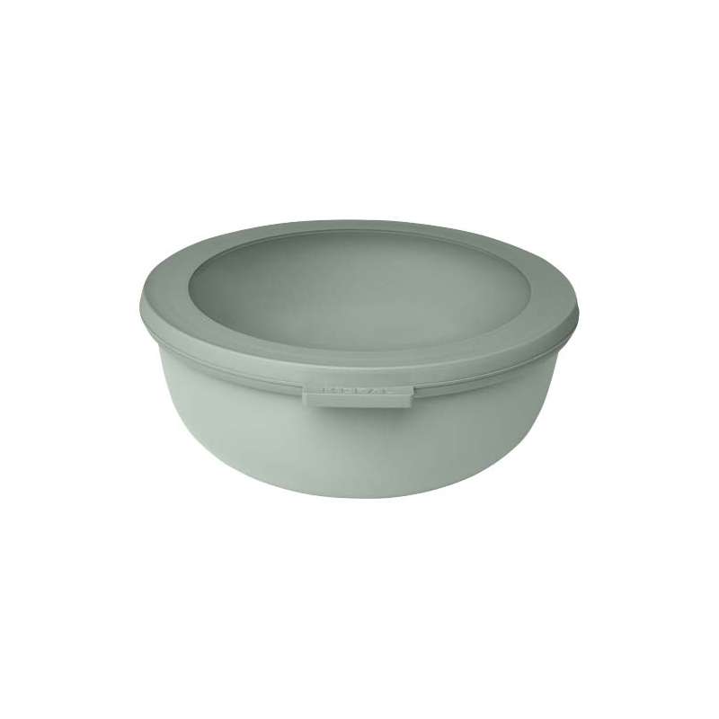 La ciotola Cirqula, con una capacità di 1250 ml, è perfetta per conservare o trasportare grandi porzioni di zuppa, carne o insalate. Conserva gli alimenti nella ciotola in frigorifero o nel congelatore, scaldali nel microonde (il coperchio deve essere rimosso) e servili in tavola direttamente nella ciotola. La multiciotola Cirqula di Mepal è realizzata in materiale infrangibile. La finestrella trasparente sul coperchio garantisce che il contenuto sia ben visibile. L'innovativo coperchio flessibile è ermetico e a prova di perdite. Il coperchio mantiene gli alimenti freschi più a lungo e permette di portare facilmente con sé la ciotola. Le multiciotole sono pratiche e facili da riporre perché si possono impilare e metterle via. Senza BPA. Massimo 110 gradi Celsius. Adatta per frigorifero, congelatore, forno a microonde e lavastoviglie. 2 anni di garanzia Mepal. Dimensioni: 7,5 x Ø 20 cm Materiale: Plastica PP, Plastica TPE Diametro: 20 cm