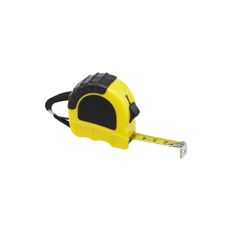 Metro a nastro da 3 m in acciaio e ferro, con clip da cintura in ferro e cinturino per il polso in poliestere. Scala in centimetri e pollici. La custodia è realizzata in plastica riciclata certificata RCS al 21% e TPE riciclato al 4%. Il Recycled Claim Standard (RCS) verifica il contenuto riciclato di un prodotto durante tutte le fasi della catena di fornitura. Confezionato all'interno di una confezione regalo STAC realizzata da fonti sostenibili. Dimensioni: 6,5 x 2,2 x 7,5 cm Materiale: Acciaio inossidabile riciclato, Plastica ABS riciclata