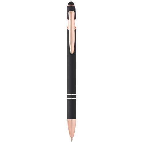 La penna a sfera Nanna con finitura oro rosa presenta un fusto in alluminio riciclato e uno stilo tattile in silicone. L\'alluminio riciclato riduce la quantità di rifiuti nelle discariche e aiuta a conservare le risorse naturali con l\'obiettivo di ridurre le emissioni di gas serra. Colore dell\'inchiostro: Nero. Capacità di scrittura: 800 metri. Dimensione del pennino: 1,0 mm.