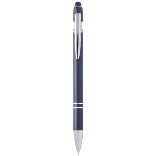 La penna a sfera Kish con finitura argentata, presenta un fusto realizzato in alluminio riciclato e uno stilo tattile in silicone. L'alluminio riciclato riduce la quantità di rifiuti nelle discariche e aiuta a conservare le risorse naturali con l'obiettivo di ridurre le emissioni di gas serra. Colore dell'inchiostro: Blu. Capacità di scrittura: 800 metri. Dimensione del pennino: 1,0 mm.