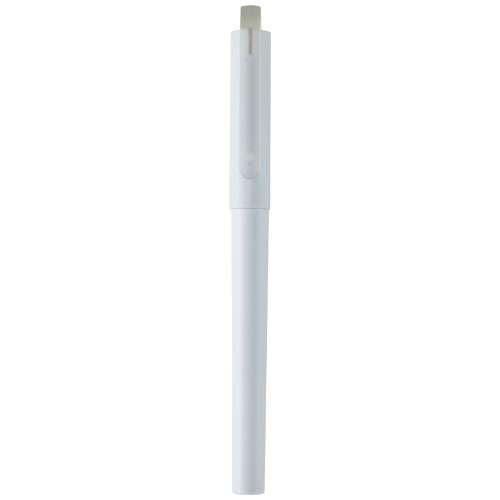 Penna roller realizzata in plastica PET riciclata per ridurre l'utilizzo di plastiche vergini. L'inchiostro in una penna gel è una combinazione di componenti a base d'acqua e olio che assicura un flusso regolare e omogeneo paragonabile a quello di una penna stilografica. Questo tipo di inchiostro è noto anche per la sua resistenza allo scolorimento che lo rende una scelta popolare per artisti e scrittori. Le penne gel in genere presentano una punta fine che consente di scrivere in modo preciso e controllato. Dimensioni: 14,3 x Ø 1,2 cm Materiale: Plastica PET riciclata Colore inchiostro: Black Diametro: 1,2 cm