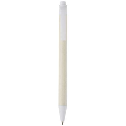 Penna a sfera con meccanismo scatto e fusto realizzato con cartoni del latte riciclati (fino al 70%). Il pulsante, la clip e la punta sono realizzati in plastica PLA. I cartoni del latte usati vengono raccolti, selezionati, lavorati e trasformati in carta, trasformando un semplice rifiuto in qualcosa di utile.