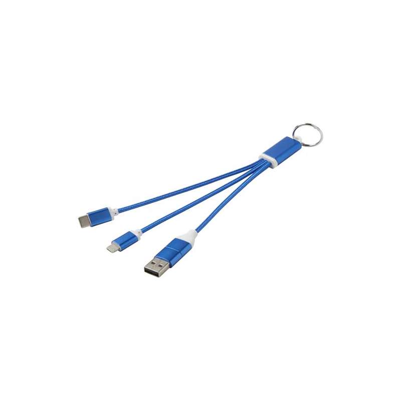 Cavo di ricarica in alluminio riciclato 4 in 1 con portachiavi Metal - cod. P124382