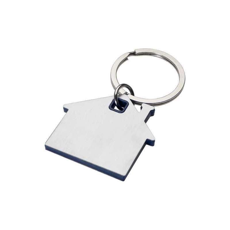 Portachiavi a forma di casa realizzato in una piastra in acciaio inossidabile con design anteriore e posteriore satinato e un chip in plastica colorata al centro. Dimensioni: 4 x 0,3 x 6 cm Materiale: Acciaio inossidabile, Plastica PP