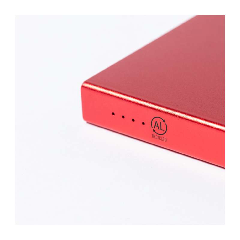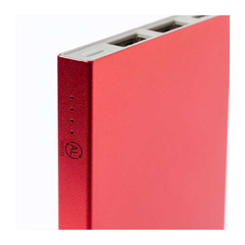 Il Caricabatterie da viaggio promozionale - cod. PF306 è un power bank in alluminio riciclato con una capacità di batteria di 4000 mAh. Dispone di 2 uscite USB e doppio ingresso e uscita Type-C, indicatori di stato di carica a LED e cavo incluso. Le dimensioni sono di 6,5 x 13 x 1 cm.