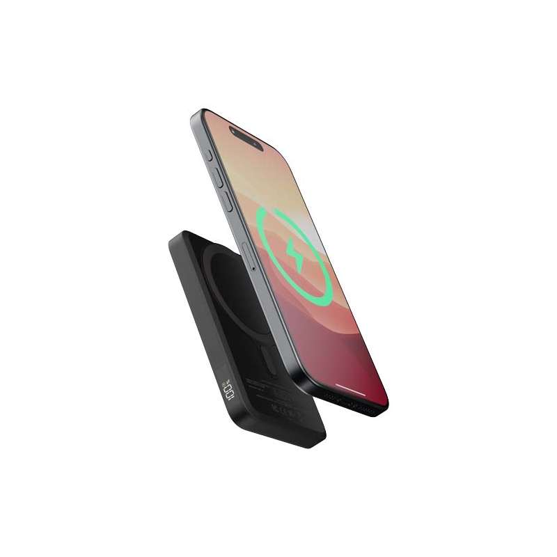 Il Power bank wireless e magnetico da 5.000 mAh è dotato di tecnologia wireless da 15 W e garantisce una ricarica veloce e efficiente. Il design compatto permette di agganciarlo facilmente al retro dell'iPhone (a partire dall'iPhone 12) per avviare la ricarica immediatamente. Inoltre, è compatibile con altri dispositivi che supportano la ricarica wireless. Realizzato in plastica ABS e PC riciclati, è anche una scelta ecologica.
