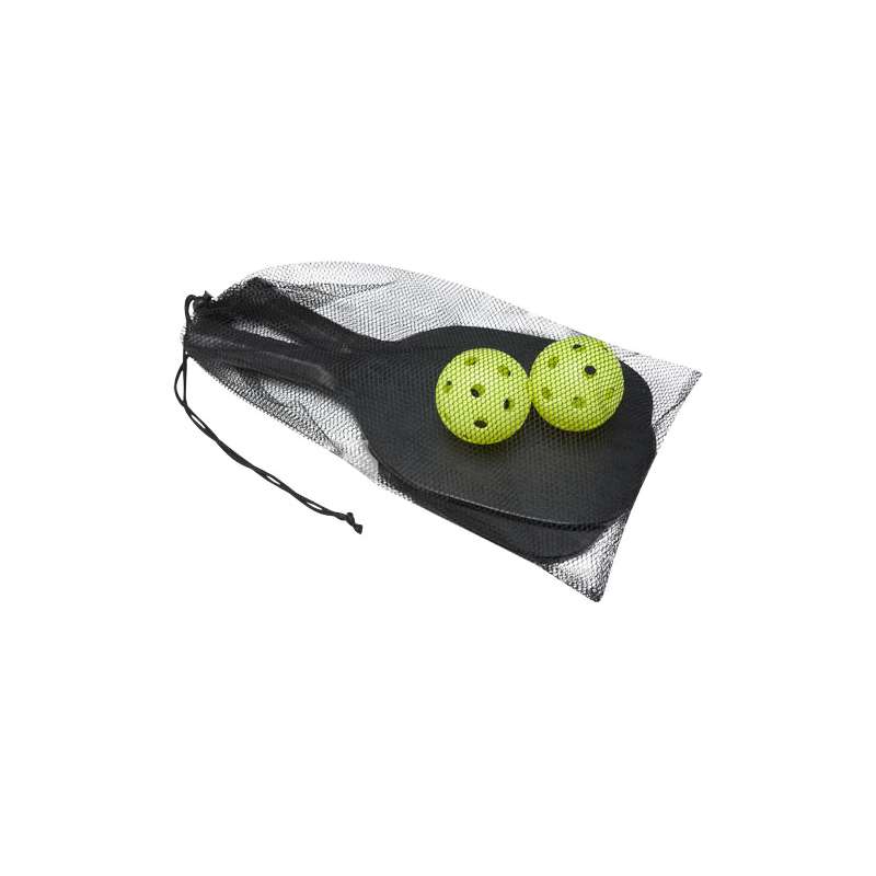 Il set include anche 2 palline in materiale PP, perfette per un gioco veloce e divertente sulla sabbia. E per tenere tutto in ordine e facilmente trasportabile, le racchette vengono fornite in una pratica custodia in rete di poliestere da 45 x 26 cm.