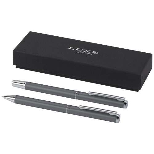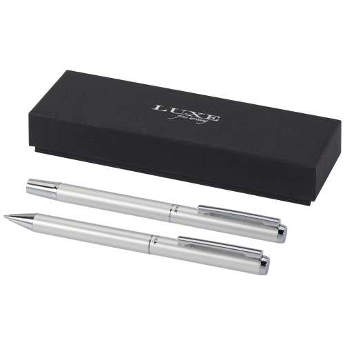 Set regalo con penna a sfera e penna roller in alluminio riciclato Lucetto (inchiostro nero) - cod. P107838