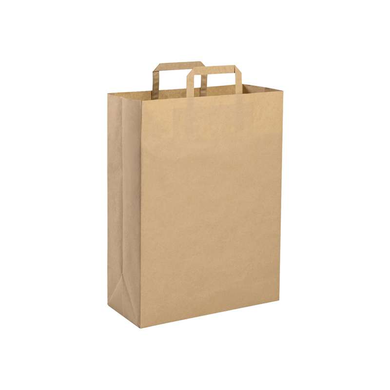 Il nostro Shopper personalizzabile con scritte è l'ideale per promuovere il tuo marchio in modo efficace ed economico. Realizzato in resistente carta riciclata avana da 90 gr/mq, questo Shopper è dotato di soffietto e maniglia piatta per garantire una maggiore resistenza e portata fino a 10 kg.