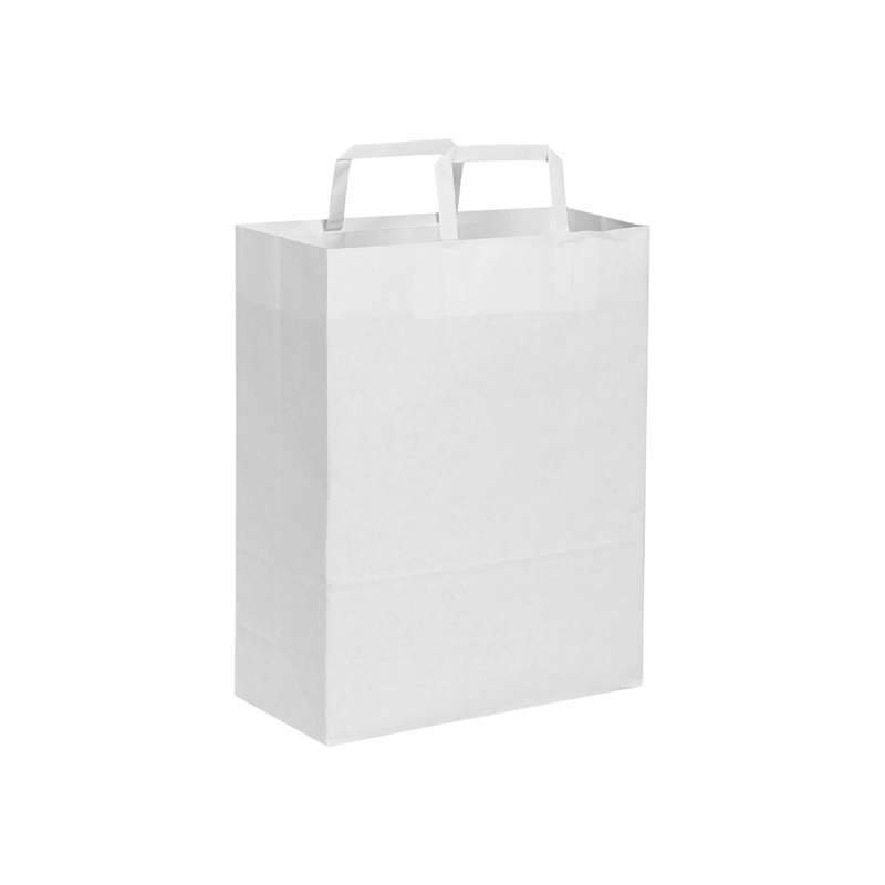 La shopper personalizzata con scritte - cod. PG070 è un prodotto ideale per promuovere il proprio marchio in modo efficace ed economico. Realizzata in resistente carta kraft bianca da 80 gr/mq, questa shopper è dotata di un comodo soffietto e di una pratica maniglia piatta che ne facilitano il trasporto. Con una portata di 6 kg, è perfetta per contenere gli acquisti dei clienti e farà sicuramente colpo grazie alla stampa personalizzata con il vostro logo o messaggio promozionale.