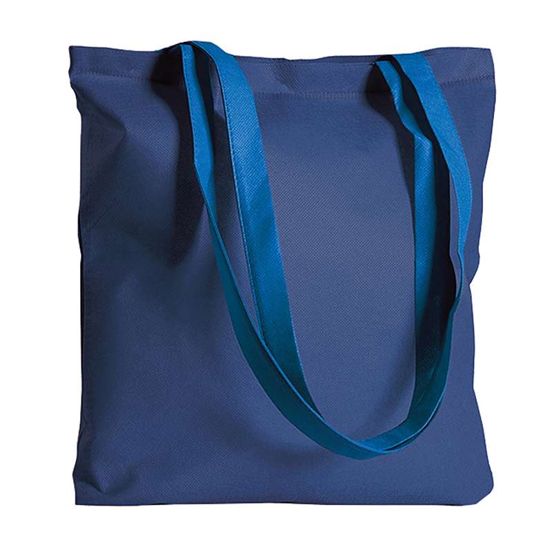 Borsa in TNT 80g/m2. Finitura termosaldata e manici rinforzati lunghi 68 cm. Disponibile in un'ampia gamma di colori.