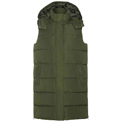 I smanicati da donna personalizzati sono imbottiti e dotati di cappuccio rimovibile, collo alto e chiusura anteriore con zip nascosta da pattina. Le due tasche con chiusura a bottone automatico e le aperture laterali con cerniere offrono praticità e stile.