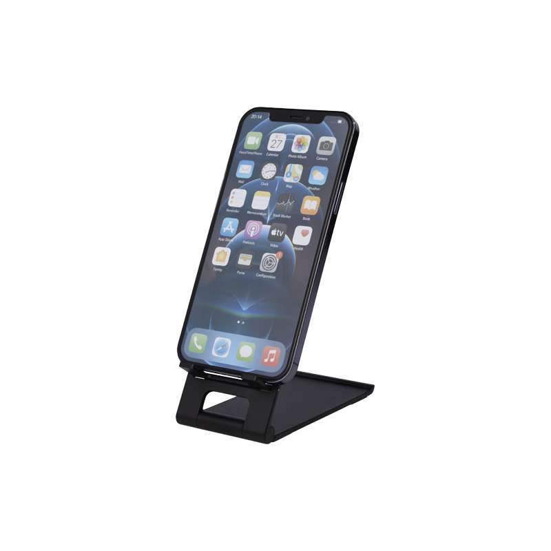 Supporto per smartphone con design elegante in alluminio di alta qualità per mantenere i dispositivi saldamente in posizione. Il supporto può essere piegato completamente diventando sottilissimo: potrai così portarlo facilmente con te ovunque. Sia l\'altezza che le diverse angolazioni di visione possono essere regolate per adattarsi a tutte le esigenze, mentre la base è realizzata in un materiale antiscivolo che ne impedisce lo spostamento. Consegnata in una scatola di carta kraft di elevata qualità con un adesivo colorato. Dimensioni: 11,5 x 1 x 5,65 cm Materiale: Alluminio, Plastica siliconica