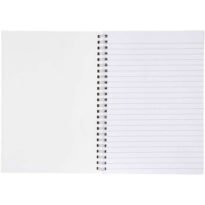 Blocco note spiralato Desk-Mate® di formato A4. Include 50 fogli di carta bianca (80 g/m²) ed una copertina frontale (450 g/m²). La copertina è impermeabile. Puoi personalizzare le pagine di questo versatile blocco note con qualsiasi design - sia che tu voglia fogli a righe, a quadretti o puntinati - tutto è possibile!