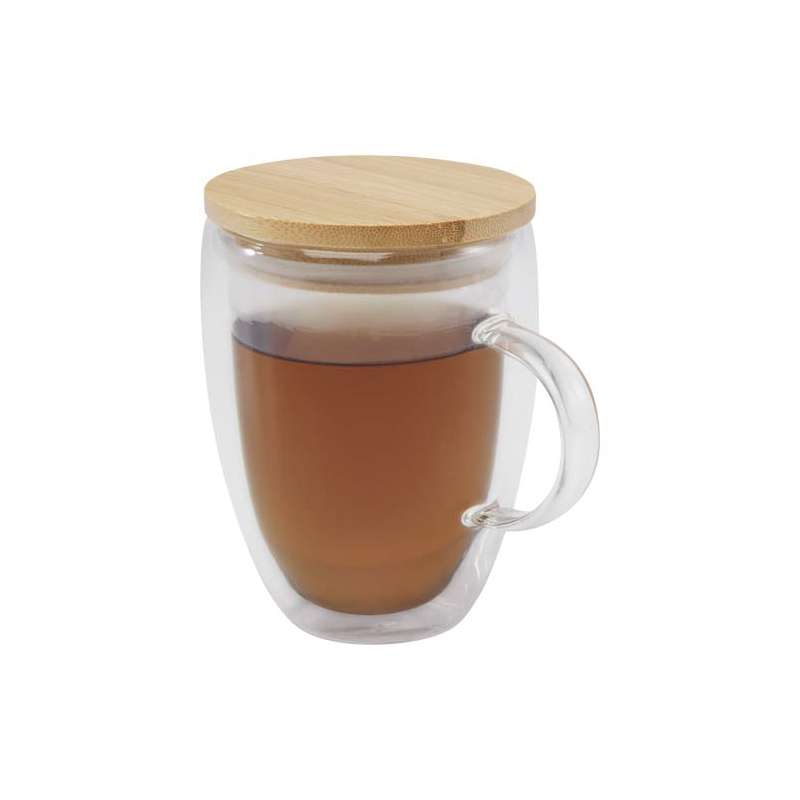 Tazza in vetro da 350 ml con coperchio in bambù Leona - cod. P113418