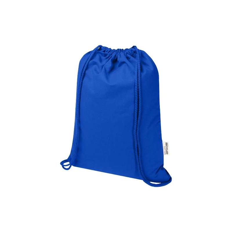 La borsa con cordoncino Oregon Blend, realizzata al 60% in cotone riciclato e al 40% in PET riciclato certificati GRS, è perfetta da regalare per promuovere il proprio marchio o campagna di marketing. Questa leggera borsa è economica, facile da trasportare sulla schiena o sulla spalla e offre spazio sufficiente per aggiungere un logo o altri messaggi. Il cordoncino ne facilita l\'apertura e la chiusura, mentre il materiale in cotone da 140 g/m² è resistente e durevole. Ampio scomparto principale con chiusura con cordoncino in cotone. Anche i metodi di stampa disponibili per questa tote bag sono certificati GRS, assicurando che l\'intera catena di fornitura sia trasparente e certificata. Realizzata in India. Resistenza fino a 5 kg di peso. Capacità: 5 litri. Dimensioni: 33 x 44 cm Materiale: 60% Cotone riciclato certificato GRS e 40% Poliestere riciclato certificato GRS, 140 g/m2