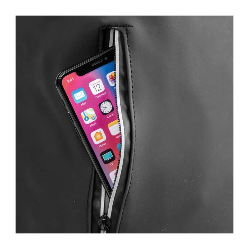 Le caratteristiche principali di questo zaino includono un interno effetto suede con una tasca porta pc, una tasca frontale con cerniera per tenere a portata di mano gli oggetti più importanti, un profilo catarifrangente per garantire la massima visibilità durante le ore notturne, una tasca sul retro con imbottitura traspirante per un maggiore comfort e spallacci imbottiti e regolabili per adattarsi perfettamente alla tua corporatura.